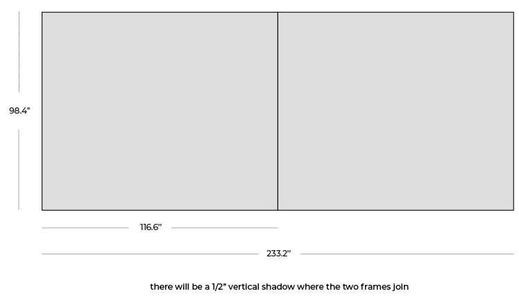 TWO 3M = 116.6”W x 98.4”H pushed together to make a 6M = 233.2”W x 98.4